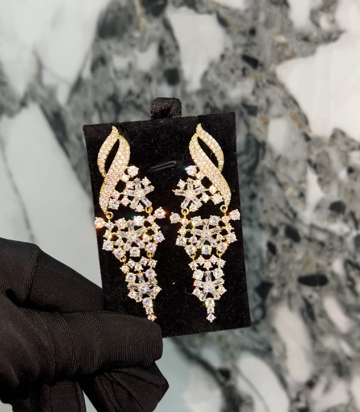 Shine at any celebration with these stunning earrings, designed to add a touch of glamour to your look. Their elegant design and eye-catching sparkle make them the perfect accessory for parties, nights out, or any special occasion.
