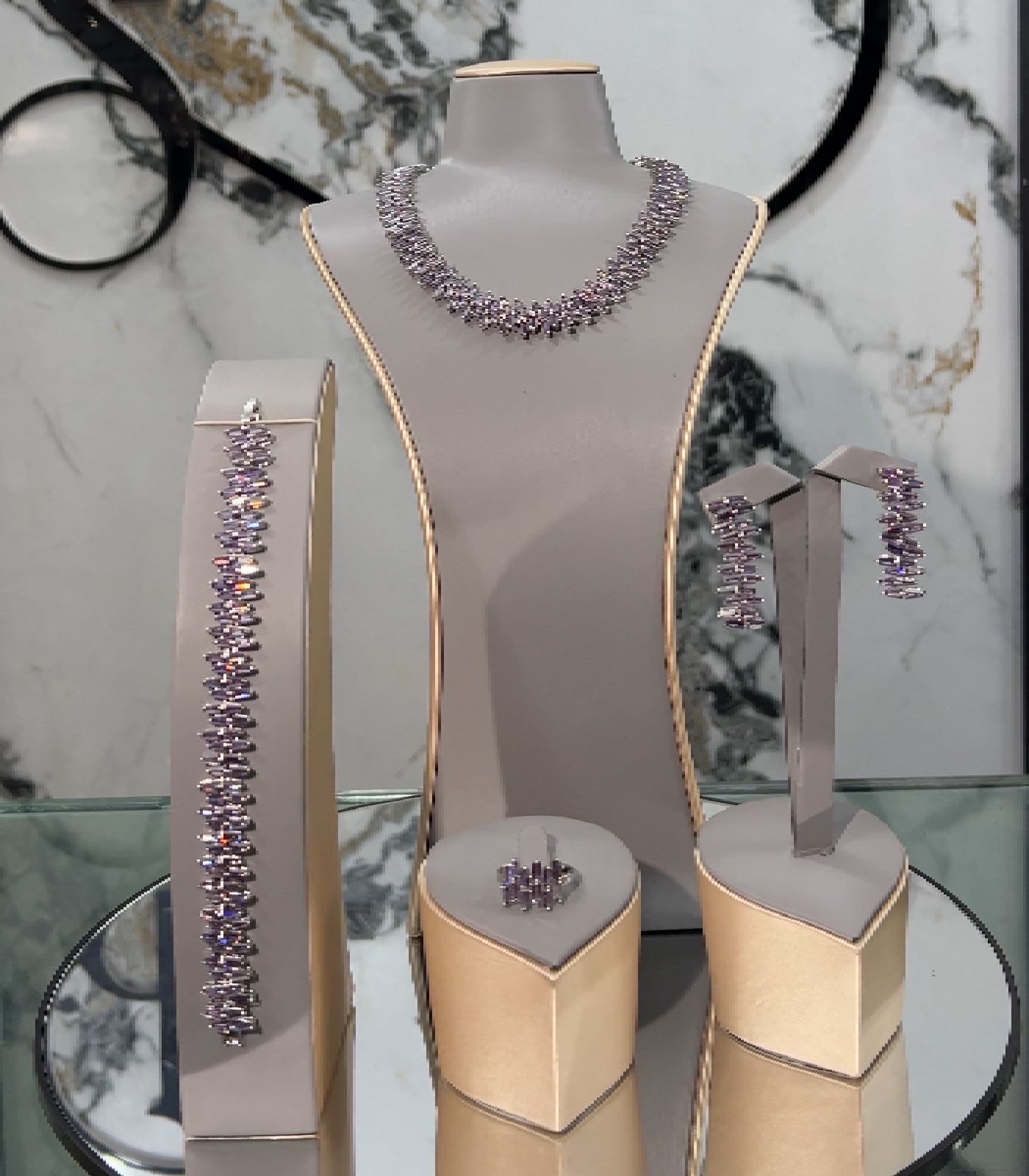A timeless jewellery set featuring a matching necklace, earrings, and bracelet.